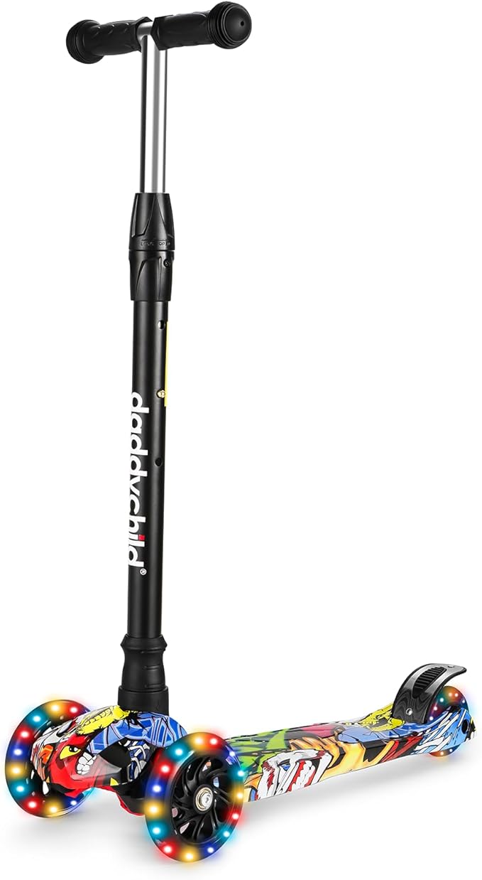 • Kids Kick Scooter, 3 Wheeled Scooter for Kids, Child/Toddlers Toy, Adjustable Height, Anti-Slip Deck, Flashing Wheel Lights, for Boys/Girls 3-12 Year Old