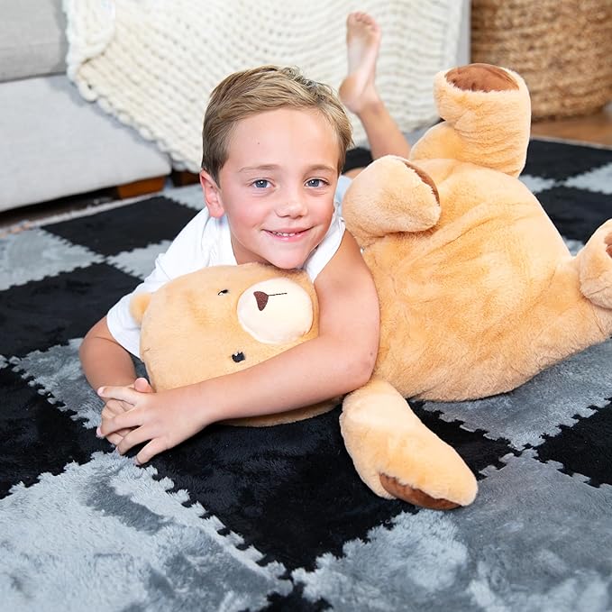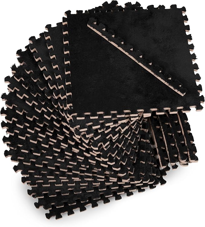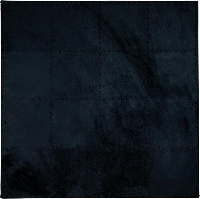 16 Piece Carpet Squares Puzzle Mat 49" x 49" Plush Interlocking Carpet Tiles, Foam Floor Tiles for Baby Play Mat - Kids Soft Play Floor Mats, Anti Slip Jigsaw Flooring Playmat Playroom Rug (Black)