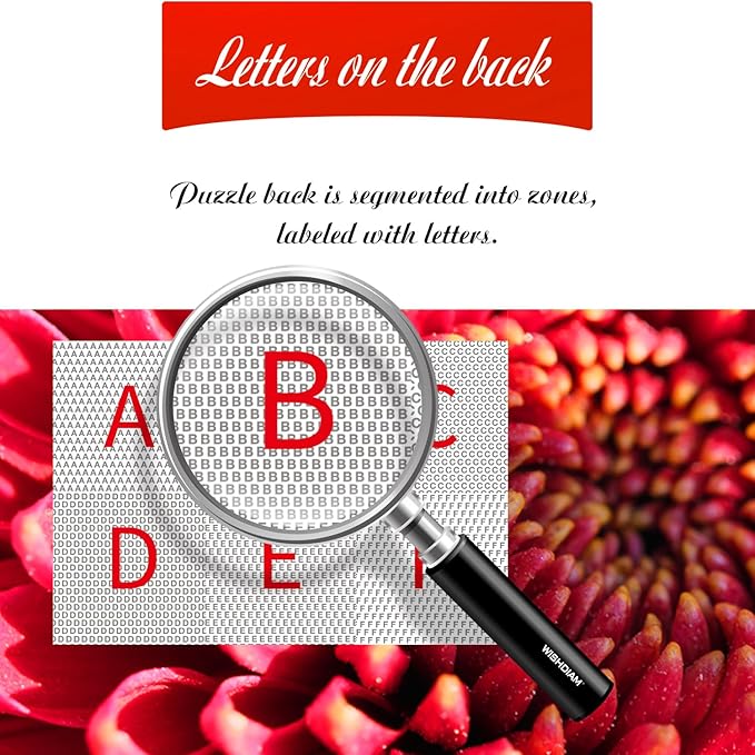 • English Letters on the Back: Marked with english letters and divided into areas, which can help you complete the jigsaw puzzles more efficiently.