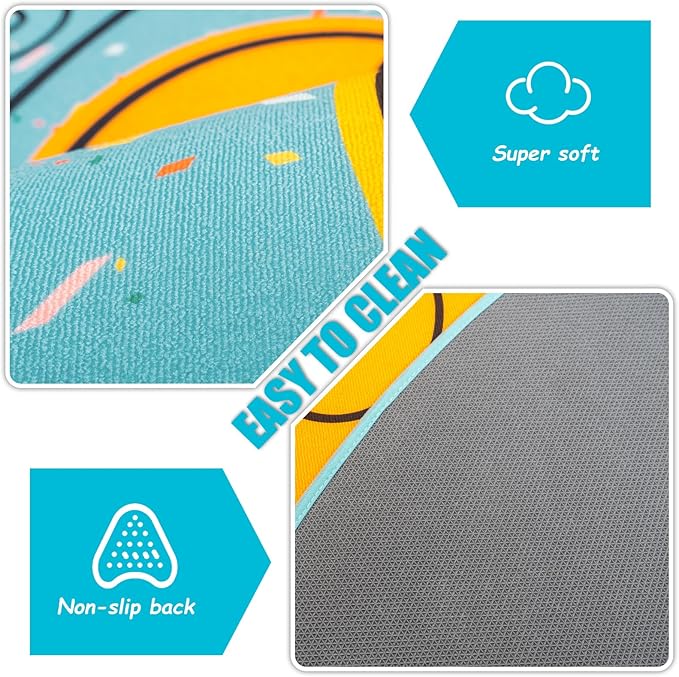 - This kids play rug measures 6ft, and the back of the children's bedroom rug is made of non-slip TPR rubber, which enhances friction and allows the rug to grip the floor better, ensuring your child's safe play