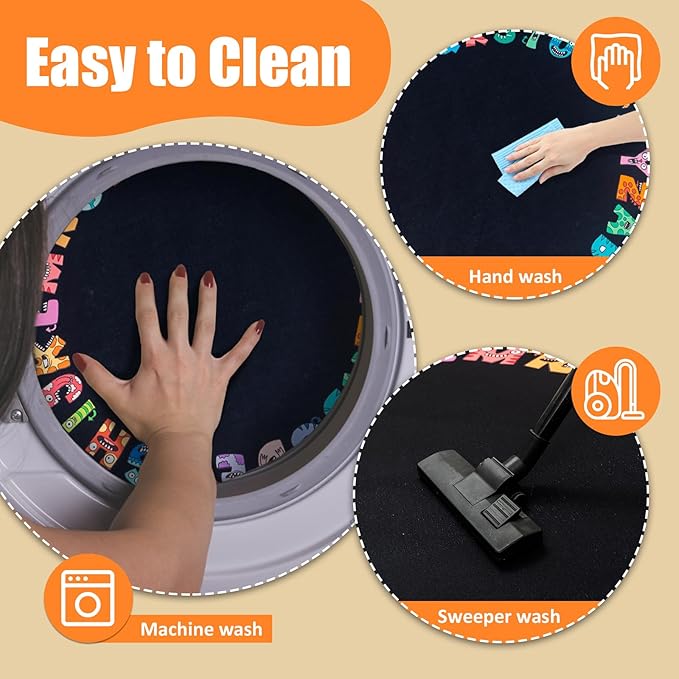 - This alphabet rug Made from upgraded materials has a soft luxurious pile with well-stitched edges that are lint-free, odorless and skin-friendly.Families can also play games on the game carpet, which can promote the close relationship between parents and children