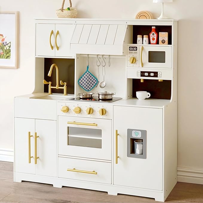 - Certified Safe & Durable Construction:Crafted from sturdy yet lightweight MDF (medium-density fiberboard), this 43-lb kids kitchen meets strict CPC/ASTMF963 safety standards. Features easy-clean surfaces and rounded edges for worry-free playtime durability.
