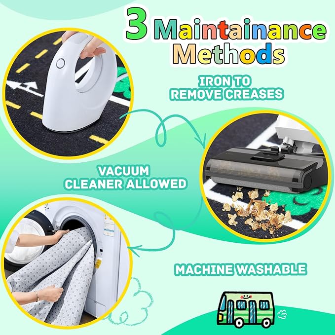 • [About Creases & Thickness]Due to vacuum package, the road map rugs for kids may feel thinner and have wrinkles after right unpacking.Please don't worry,it will take 3 to 7 days for the kids rug to regain its original shape.You could also use a steam iron to smooth out creases caused by shipping folds