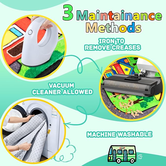 • [About Creases & Thickness]: Due to vacuum package, the road map rugs for kids may feel thinner and have wrinkles after right unpacking. Please don't worry, it will take 3 to 7 days for the kids rug to regain its original shape. You could also use a steam iron to smooth out creases caused by shipping folds.