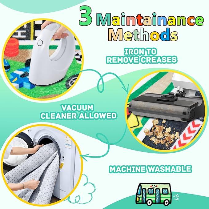 • [About Creases & Thickness]: Due to vacuum package, the road map rugs for kids may feel thinner and have wrinkles after right unpacking. Please don't worry, it will take 3 to 7 days for the kids rug to regain its original shape. You could also use a steam iron to smooth out creases caused by shipping folds.