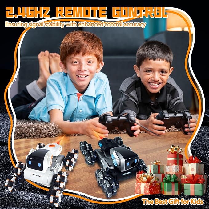 - Cool RC Stunt Car: The cool robot dog remote control car toy has 8 wheels, it spins, flips, goes backward, forward, turns left, turns right. Easily complete 360°rotation,crawling, drifting and other stunts, More stunts are waiting for you to explore. Suitable for 8+ years old boys and girls