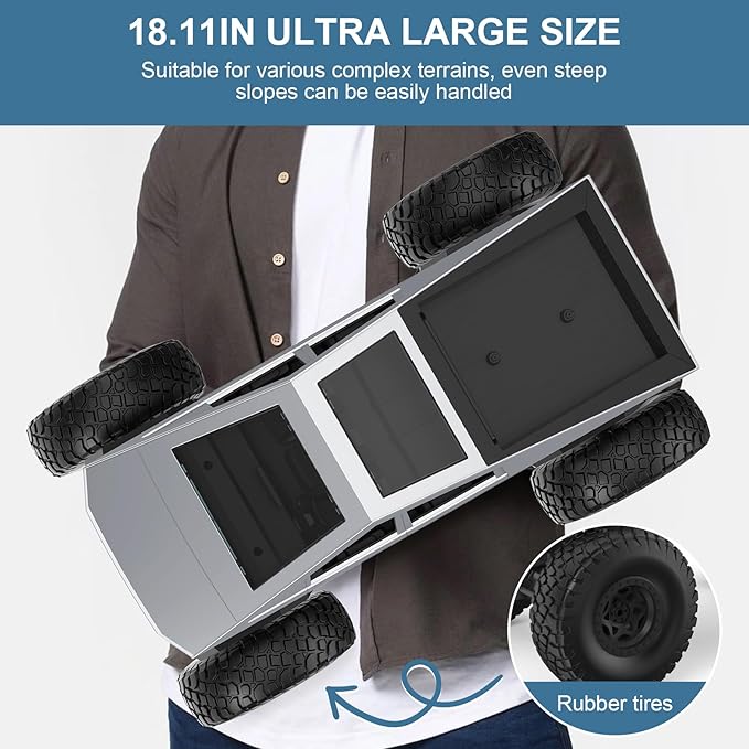 • 【Upgraded Larger and More Realistic】Experience the thrill of owning a Cyber Monster Truck that's 8X larger than others!Realistically reproduces the classic appearance of cyber truck with exquisite details, making you feel as if you own the same small version of the car of future