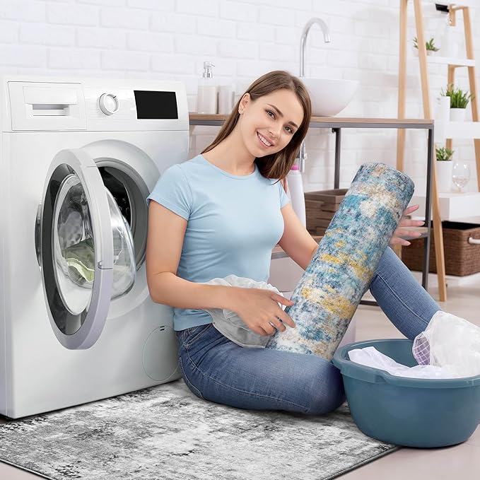 - Non-Slip Backing: Equipped with a TPR non-slip rubber backing, this small rug stays securely in place on smooth floors, enhancing safety while prevents heavy traffic from scuffing the floor; Ideal for homes with kids or pets family members, it helps prevent slips and falls while maintaining style and comfort