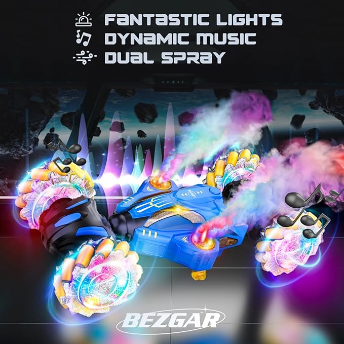 - The Ideal Gift For Kids: BEZGAR remote control car is the perfect gift for children. Operating the car requires kids to precisely control direction and speed, which helps improve their reaction time and coordination skills. At the same time, parents can play, race, or team up with their kids to complete stunts, offering valuable opportunities for parent-child interaction.