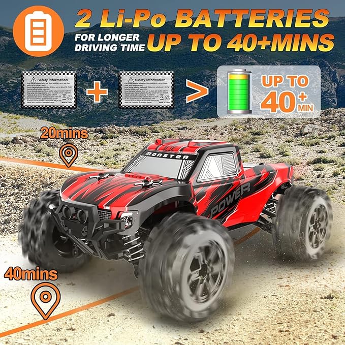 - 【Full Proportion Control&Extra Batteries】Designed with 2.4GHz Remote Control System, Independent Suspension, Proportional Throttle & Steering Control System, provide you with stepless speed, steering control and no worries for any interference. It’s easy to start your racing journey comes with two 900mAh large capacity rechargeable batteries supporting 40+mins longer running whether you have the Remote Control Car for Adults, kids, beginners, amateurs or hobby grade lovers.