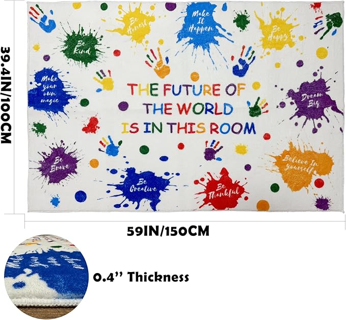 - 【CHIC DESIGN & MOTIVATION】Our colorful kids rug combines inspirational quotes, including Be Kind, Be Brave, Be Honest, Be Happy, Be Thankful, Be Creative, Dream Big, Make It Happen, Make Your Own Magic, Believe In Yourself, which are great to maintain a good mood for kids, help children's growth mindset and foster a positive and optimistic attitude and inspire children to overcome difficulties.