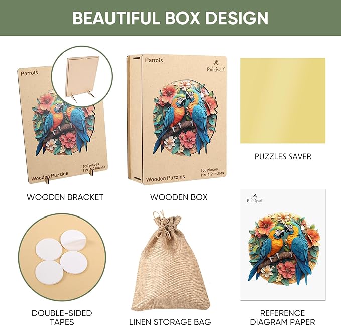 - 【Unmatched Quality, Built to Last】Crafted with precision using 5mm thick HDF wood, UV printing, and laser cutting technology, our puzzles boast a remarkable 0.03mm accuracy. The smooth, durable pieces are fade-resistant, formaldehyde-free, and odorless, with a perfect interlocking fit. This vintage parrots wooden puzzle is a timeless treasure that can be enjoyed for decades.