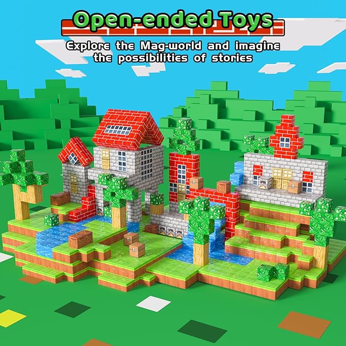 - 100PCS OVERSIZED SET OF MAGNETIC TOYS: The Magnetic Blocks Forest Worlds set offers rich patterns to make your building art more vivid and realistic than simple solid color squares, and kids will have everything they need to decorate their little castles or red brick cities. Unleash kids' creativity and enjoy hours of role-playing fun!