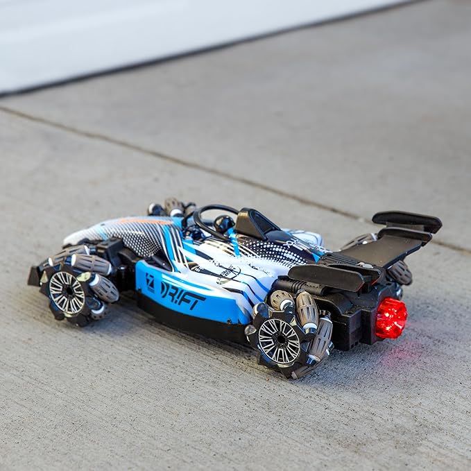 - IMPRESSIVE STUNTS AND EFFECTS: This remote control drift car features 360-degree rotation for spins and turns. It features flashing lights, engine sounds, and beat music. Plus, fill the water reservoir to create unique water vapor effects for the realistic look of car exhaust. The car includes a lithium battery which must be charged for 2 to 3 hours using the included cable before use. When fully charged, the car can run for approximately 30 minutes.
