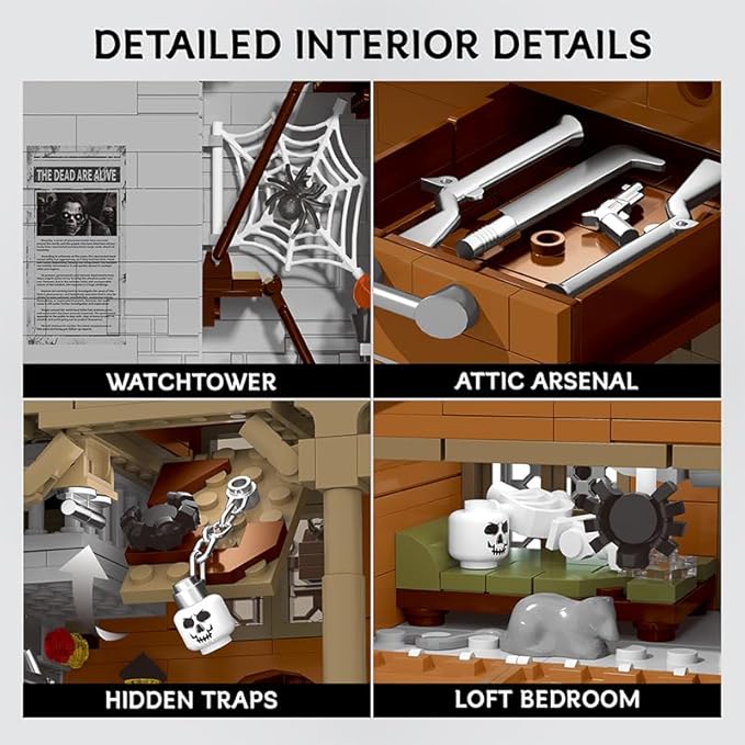 • RICH DESIGN INSPIRE INGENUITY - This house building kit features abundant details. Including overturned cars, protective nets, guard towers, restore the scenes in the film and television, creating an immersive mysterious atmosphere.It's the nice gift for walking death fans.