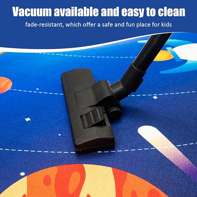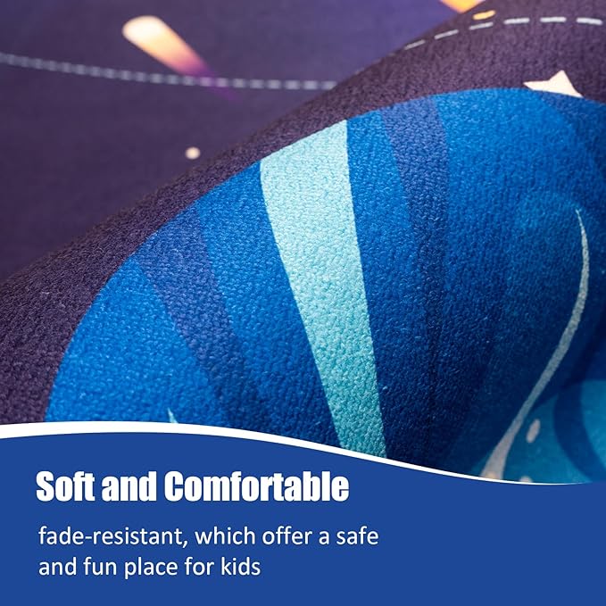 - VERSATILE AND WORTH GIFTING: This space themed rug is ideal for children's rooms, playrooms,classrooms, daycare centers and bedrooms,and it is also a perfect gift for family,friends, children,and relatives.It is both decorative and practical play mat to brighten up your child's space.