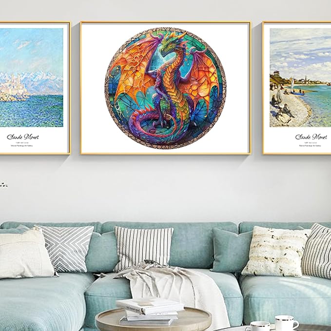 Wooden Puzzles for Adults, Winged Dinosaur Puzzle Color Challenge Jigsaw Puzzles 300 Piece Royal,12x12.6 in Thickened Unique Shapes Family Reunion Puzzle, Best Gift for Adults and Kids, Family Game