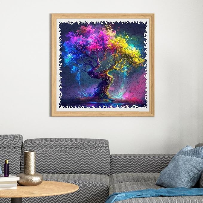 Tree of Life Wooden Jigsaw Puzzles, 500 Pieces Wooden Puzzle for Adults, Unique Shapes Family Reunion Puzzle for Adults and Kids, Beautiful Package, Best Gift for Family Friends Royal 15.9x15.6in