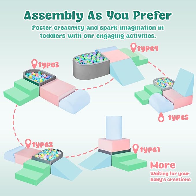 - 【Safe Play & Fun Activities 】Our climbing blocks with foam ball pit for toddlers 1-3(balls not included) can hold up to 100 balls and are made from non-toxic, odorless fabric. We prioritize safety—there are no hard structures or sharp edges in the foam blocks, ensuring kids are protected from bumps and injuries. Your little ones can safely play, crawl, and roll on this climbing set, offering additional support for toddlers and peace of mind for parents.
