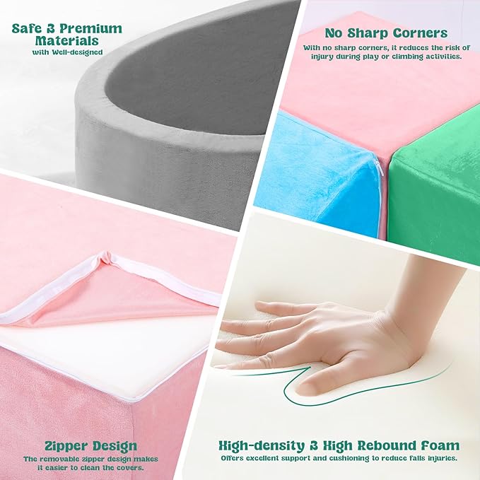 - 【High-Quality Dense Foam】 Enhance your child's playtime with our premium toddler climbing blocks filled with high-density foam. High-density foam rebounds after use, ensuring it won’t develop permanent dents over time like cheaper foam! The firm yet soft foam offers exceptional cushioning and support, allowing kids to climb and crawl with confidence, without the risk of injury.