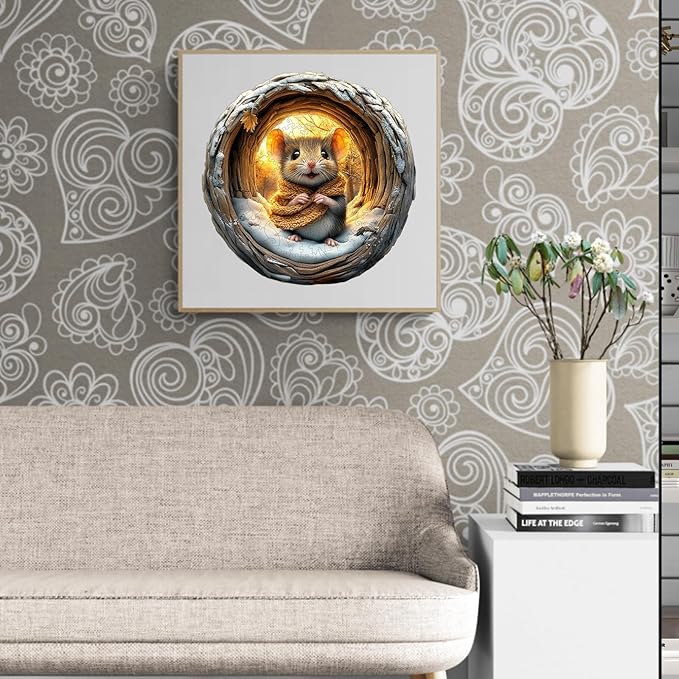 - Realistic 3D Effect Puzzles: The mouse wooden puzzle has a unique 3D visual effect that brings the scene to life. The details of the mouse, the texture of the scarf, and the intricacies of the nest all appear incredibly lifelike. The multi layered design gives a striking 3D visual impact, making it seem as if the mouse is peeking out from a real nest. This realism not only enhances the visual appeal but also makes it a delightful piece for family fun and home decoration