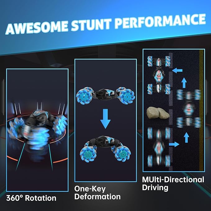 - 【Remote range up to 131 FT】: The remote control stunt car adopts 2.4GHz technology-independent signal anti-interference control, effective control distance of approximately 131 feet/40 meters, support multiplayer competition. When the distance is exceeded, the remote control car may stop or become out of control.