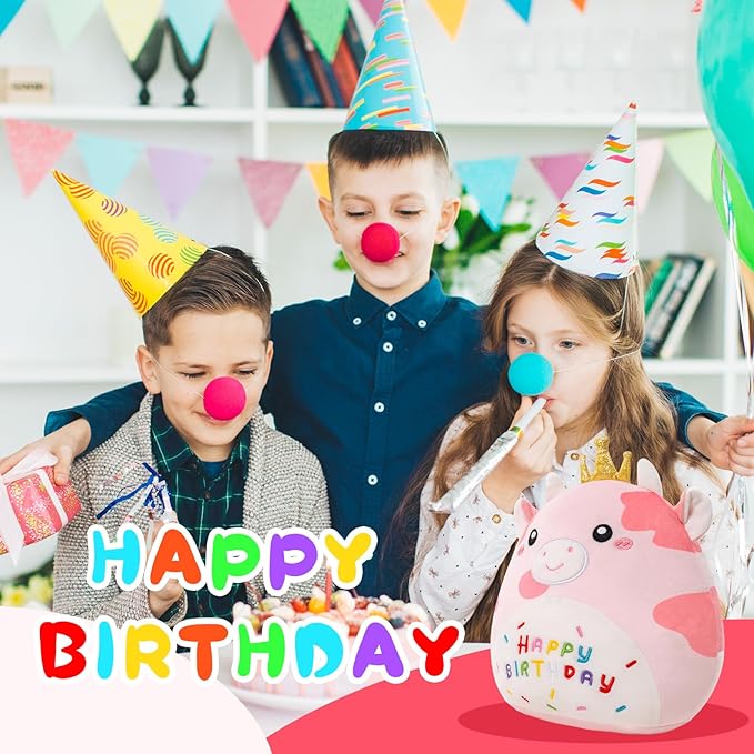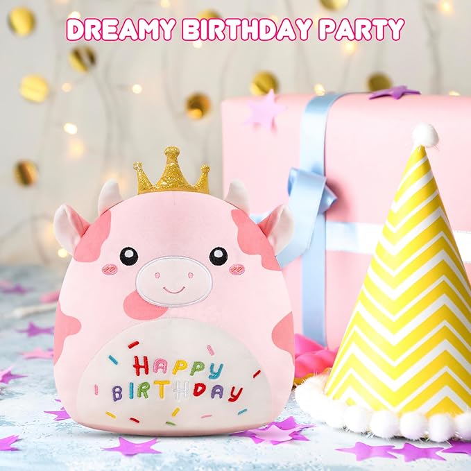 • 【Unique Design】 Pink cow plush wears a golden crown. The words "HAPPY BIRTHDAY" are embroidered on the belly. No one can resist its charm. All bad emotions and work stress will disappear when you embrace the plushie toy!