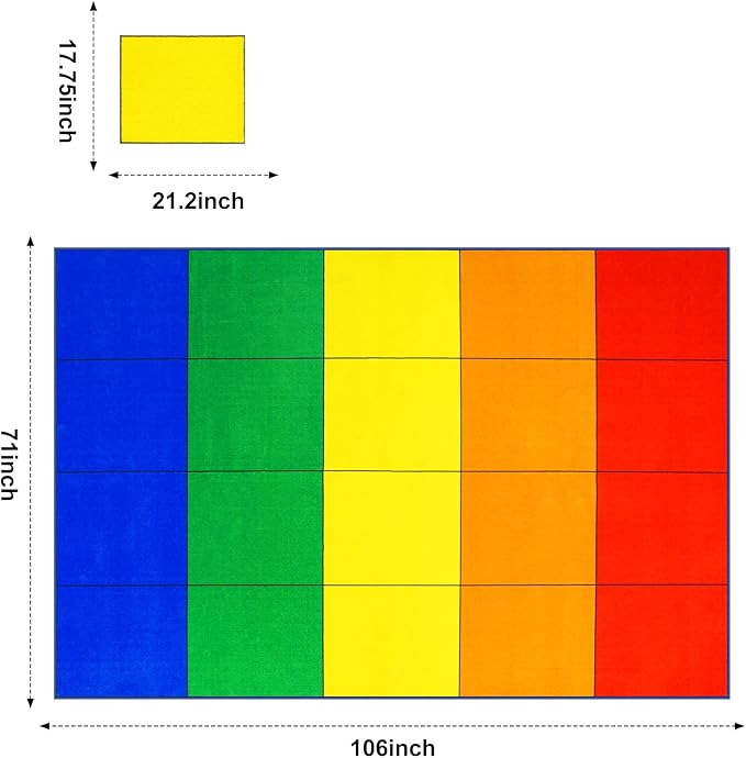 - 【Large Classroom Rug】:108"L x 72"W(20 seats) Suitable for schools, daycares and other educational settings, a great helper for teachers.A simple, ''Please sit on the carpet'' request by a teacher means that students know exactly where to go