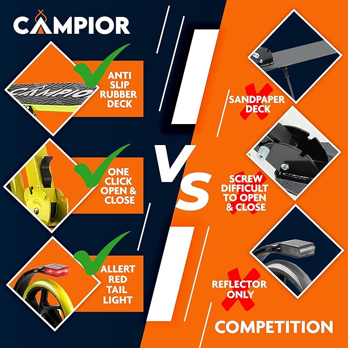 - EASY ASSEMBLY: This scooter comes with a quick lock buckle that you can use to set up the scooter, just touch the folding button to unfold or fold your scooter with one click into a small compact size making it easy to store and carry anywhere you want.
