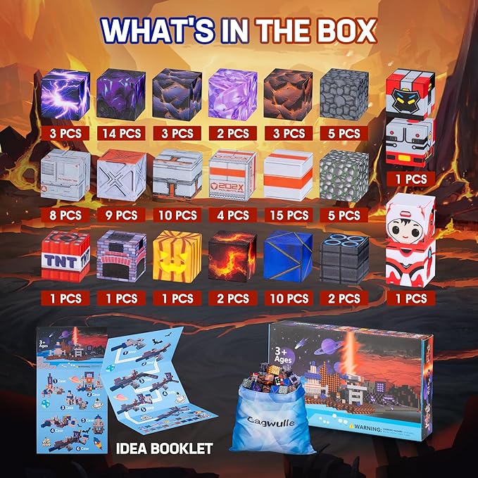 - 【Interactive and Entertaining】The magnetic block set includes an instruction book and 20 different patterns magnetic cubes.Kids can build structures and scenes with these magnetic blocks. Each cube can be easily connected for endless stacking and building variations. Perfect magnetic blocks for kids ages 3+ to play safely and creatively.Use your imagination and creativity to build your own magnetic 3D world!