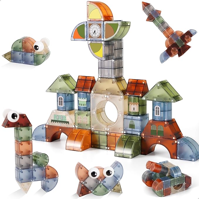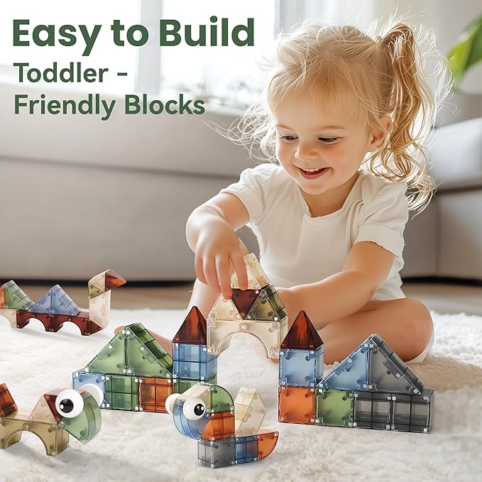 - 【Safe Materail】: Magnetic blocks are made of Non-Toxic and durable ABS plastic, the round corner design won't hurt your children's little hands. Smooth surface for more safety for toddlers just let them unleash his creativity and imagination.
