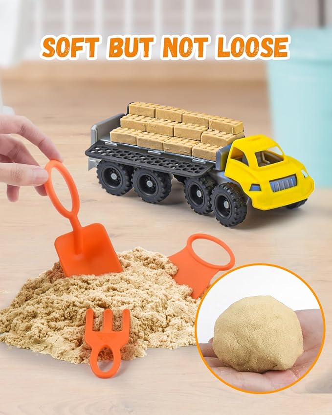 - 【Skill-Building Play Sand for Kids】This sensory sand kit encourages exploration through touch and play, helping children develop language, fine motor skills, and hand-eye coordination. The premium building components and toy trucks offer Perfect sand play fun!