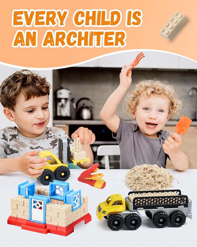 - 【Creative Building Fun】This magic sand building kit lets kids immerse themselves in the world of real construction. They can build mini houses or use their imagination to create distinctive structures. It’s a perfect way to enhance problem-solving skills and boost creativity while having fun.