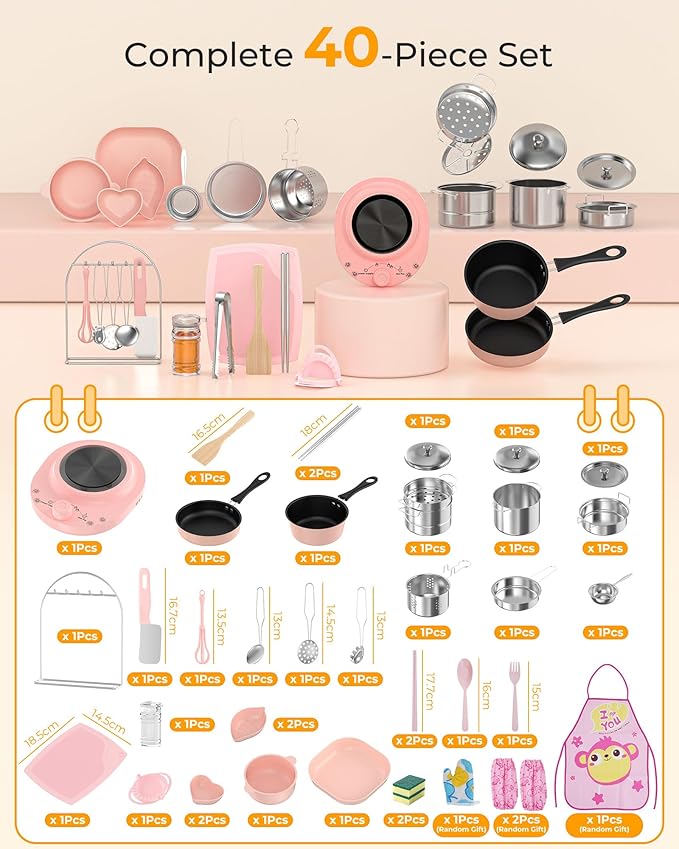 - 【Perfect Gift for Creative Minds】This 40-piece high-quality cooking set is the perfect gift for children ages 8-12. It blends fun and education, helping kids build confidence, creativity, and essential life skills. Perfect for birthdays, Christmas, Thanksgiving, or New Year’s celebrations.