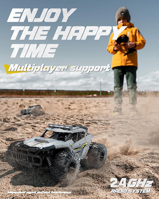 - 2.4GHz Anti-interference Remote Control:The remote controller operates in the 2.4GHz frequency band and has anti-interference effect. It can support multiple rc cars to compete at the same time. The longest control distance can reach 165 feet. Whether indoor or outdoor, it is an excellent cross-country monster truck.