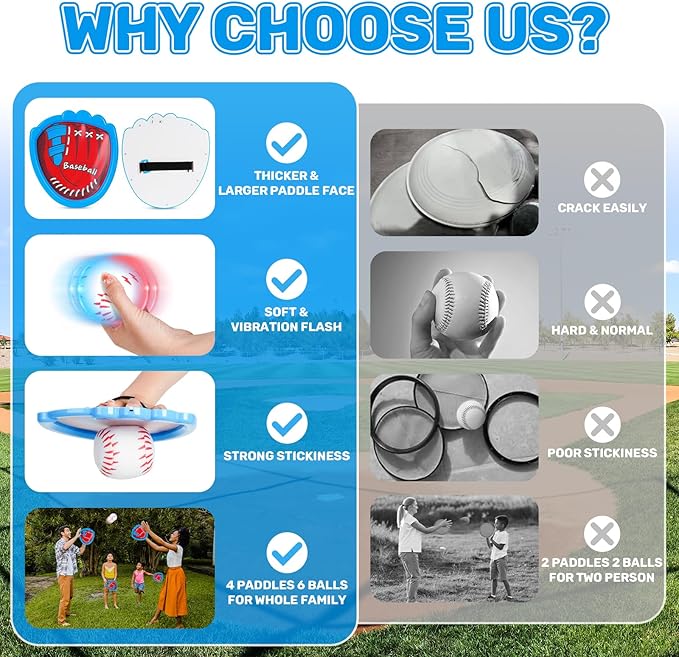 - 【Fun Indoor and Outdoor Games】This fun-filled baseball game is suitable for all ages, and children's hand-eye coordination and motor skills will be developed after each successful pitch and catch. It bridges the skill gap between children of different abilities, allowing everyone to enjoy the fun and participation of learning.