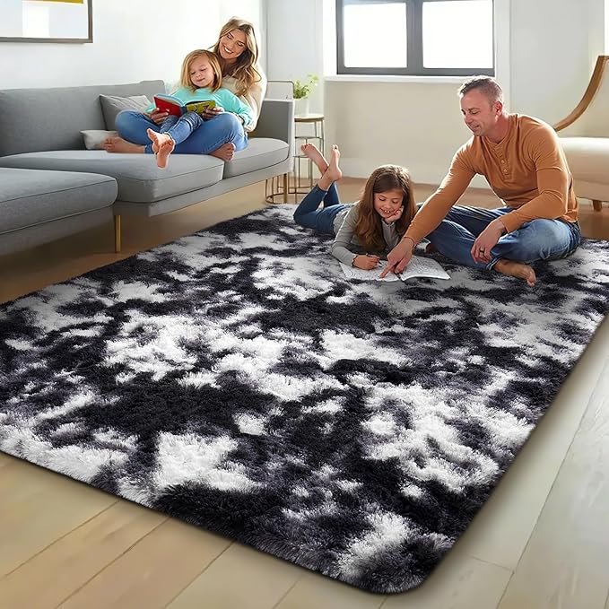 Ophanie Black and White Rugs for Living Room Bedroom, 5x8 Fluffy Fuzzy Furry Carpet, Plush Soft Shaggy Bedside Indoor Floor Area Rug for Kids Girls Boys Baby Teen Dorm Nursery Home Decor Aesthetic