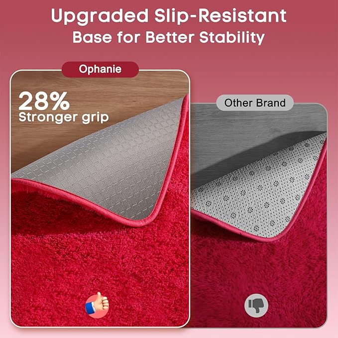 - Ultra Soft & Non-slip: Featuring a shaggy carpet surface, the Ophanie soft area rug is highly soft with a high-density sponge interlayer. This rug effectively reduces shedding, and the non-slip bottom with small, durable anti-slip dots enhances friction to prevent sliding.