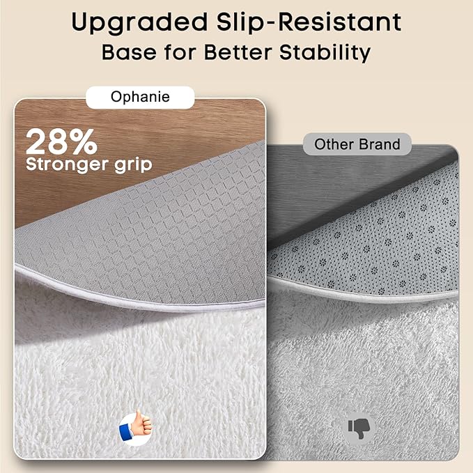 • Ultra Soft & Non-slip: Featuring a shaggy carpet surface, the Ophanie soft area rug is highly soft with a high-density sponge interlayer. This rug effectively reduces shedding, and the non-slip bottom with small, durable anti-slip dots enhances friction to prevent sliding.