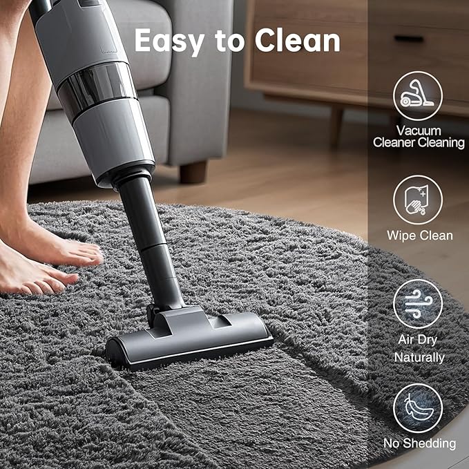 Ophanie Round Rug 4Ft Grey Circle Area Rug, Fluffy Fuzzy Bedroom Carpet, Plush Soft Shaggy Indoor Floor Gray Living Room Rugs for Kids Home Decor Aesthetic, Nursery