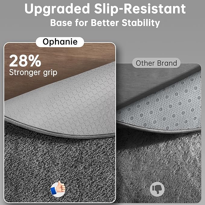 • Ultra Soft & Non-slip: Featuring a shaggy carpet surface, the Ophanie soft area rug is highly soft with a high-density sponge interlayer. This rug effectively reduces shedding, and the non-slip bottom with small, durable anti-slip dots enhances friction to prevent sliding.