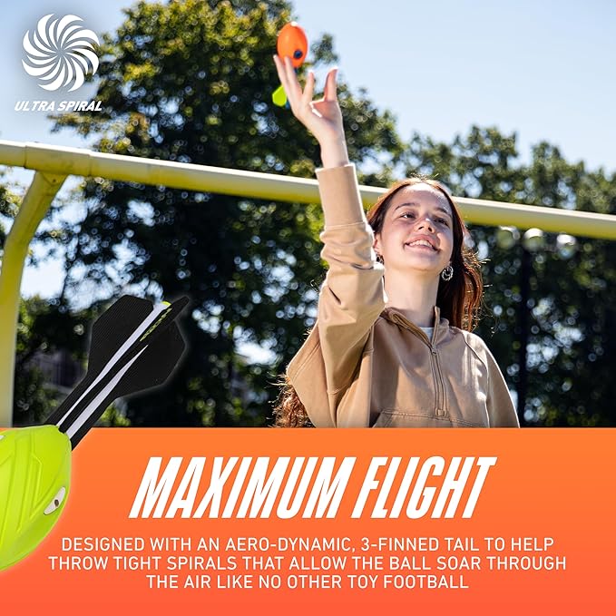 • MAXIMUM FLIGHT: These foam footballs are designed with aero-dynamic, 3-finned tails to help throw tight spirals that allow the ball soar through the air like no other toy football