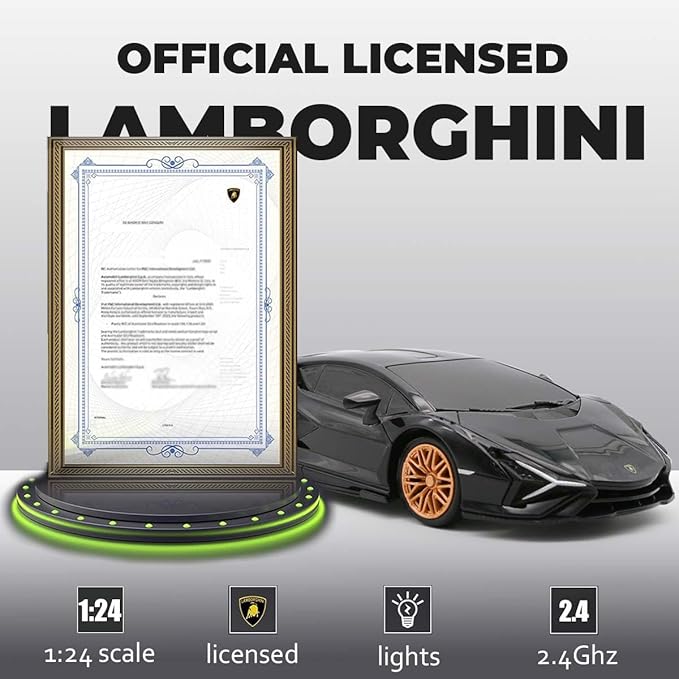 • 【IDEAL RC CAR FOR BOYS/KIDS/ADULTS】The Lamborghini Sian model works well on smooth surfaces, making it suitable for indoor and outdoor play. Not only play with it using the remote control, but also place it as a exhibit on display shelf as a model car. It's an ideal gift for birthdays, stocking fillers, or rewards.