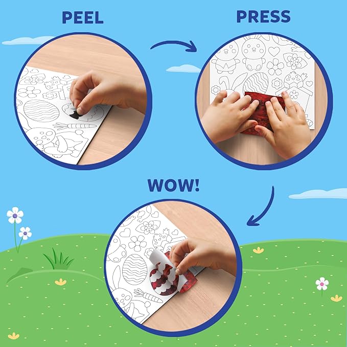 - MAGICAL EASTER CARDS!: Foil fun is a magical, mess-free activity designed to inspire hours of sparkly fun. Watch your child's imagination come to life as they decorate Easter Cards with shiny foil stickers of Easter eggs, baskets, bunnies, flowers, and more!