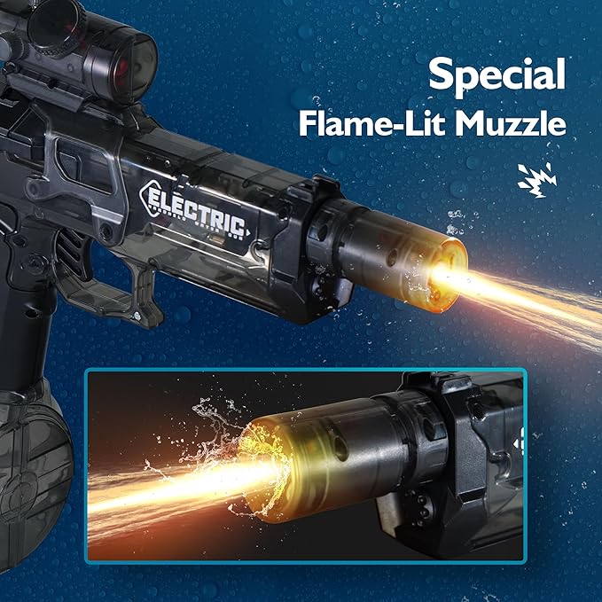 • [Waterproof Design for Safe Play]Our electric water gun features an updated waterproof design to protect the internal components. Have endless fun at the pool or beach without worry, making it perfect for water gun fights with friends and family.
