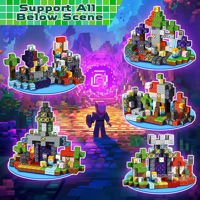 • 【Imaginaions & Creativity Builder】Let's embark on an adventure with magnetic building blocks! Spark the imagination of children with themes of lava, portal and forest. These magnet blocks encourage open-ended play, allowing kids to construct, demolish, and rebuild as they please. Safe, durable, and designed for little hands, our magnetic cubes make learning fun, enhancing focus, patience, and motor skills—ideal toys for kids 3+ years old.