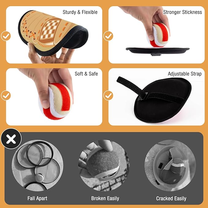 • Classic Design with Modern Comfort: Inspired by the 90s, Aywewii toss and catch ball set features upgraded soft baseball glove patterns paddles and stick balls. Lightweight and comfortable ball catch game is great easter basket stuffers and birthday gifts for kids toddler boys girls