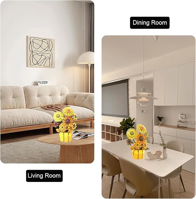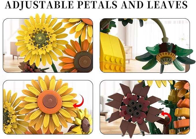 - 【Intricate Details】Meticulously crafted with intricate flower petals, stems, and center details to recreate the beauty of real sunflowers. More than a toy, it's a creative piece of art for your bedroom, study, or office, artistic home decor.