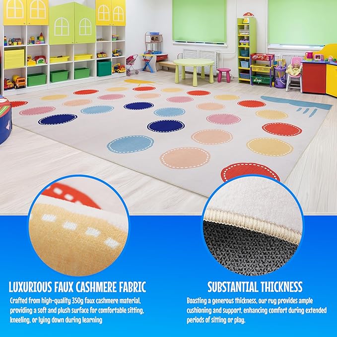 - Versatile Display: Colorful and educational, this kids play rug makes a great addition to any room! Our carpets make the ideal kids rugs for bedroom, game room rug, rug for nursery, classroom rugs, or playroom rugs for endless hours of entertainment!