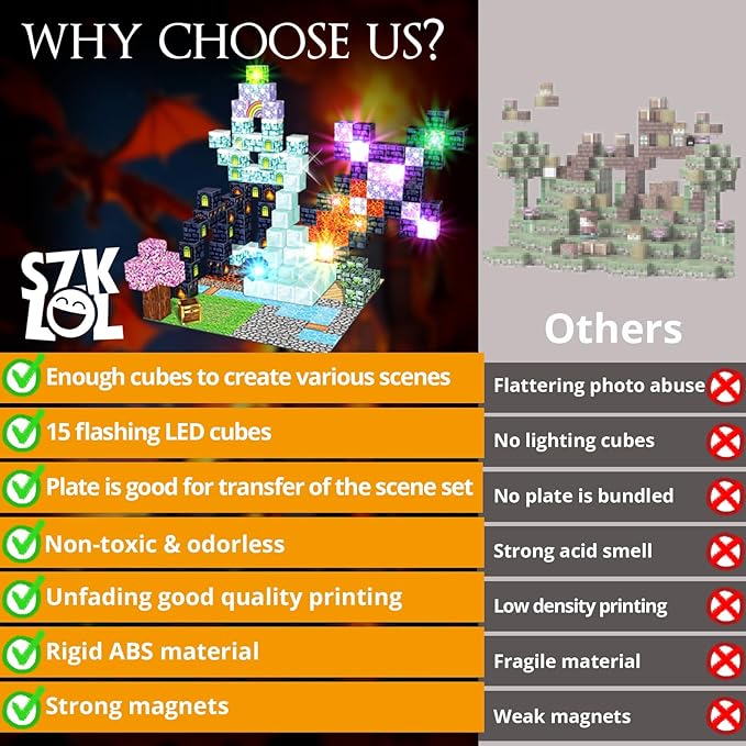 • GREAT PRESENT : Our magnetic building cubes is not only a fun toy, but also a good partner for children's growth. Let your children participate in the wonders of magnetism, structure and creativity. Build mine magnet world set is a perfect surprise gift choice for birthdays, Christmas, Children's Day, STEM, or school activities.